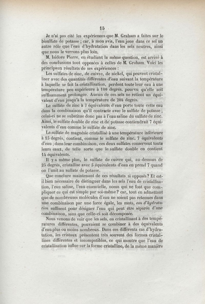 Du rôle de l'eau dans les phénomènes chimiques