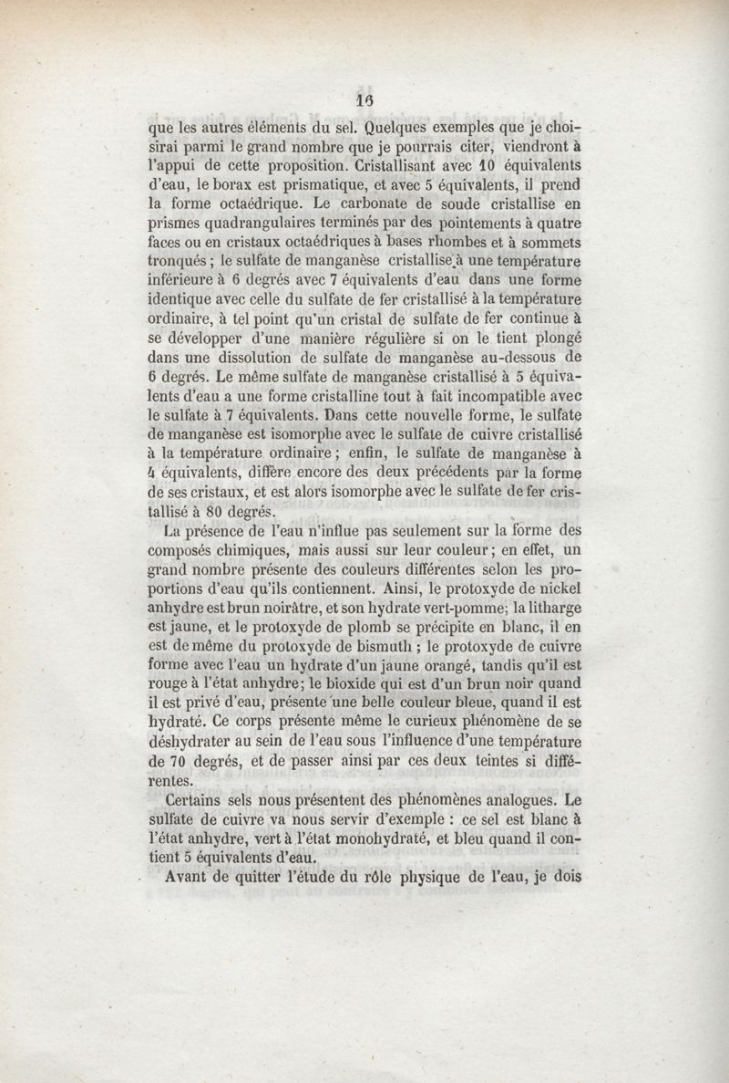 Du rôle de l'eau dans les phénomènes chimiques