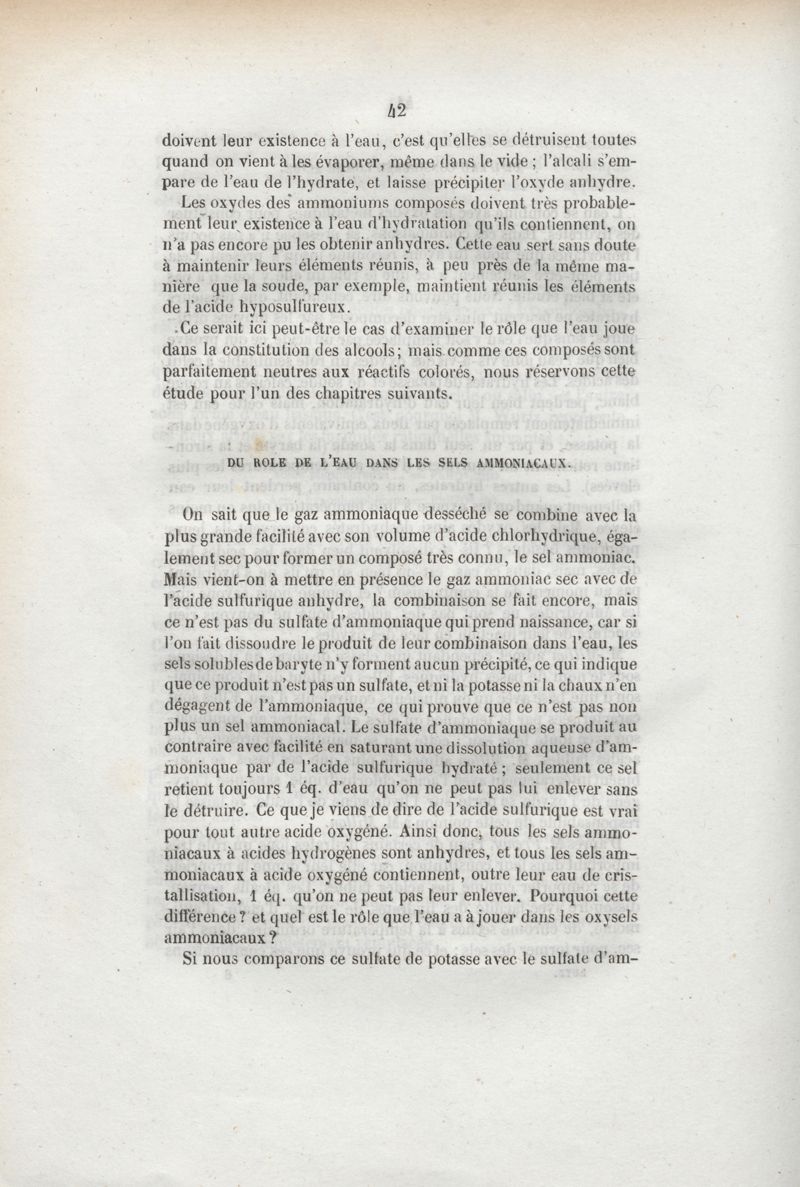 Du rôle de l'eau dans les phénomènes chimiques