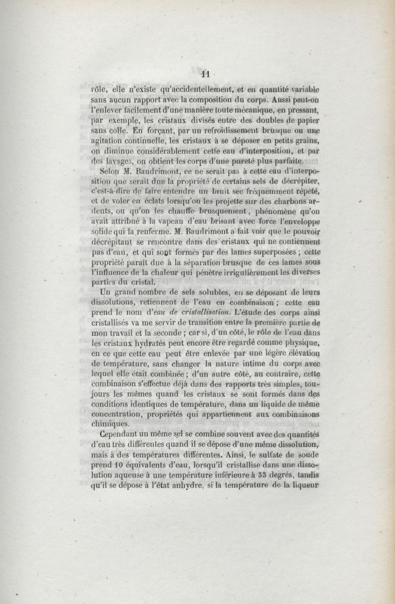 Du rôle de l'eau dans les phénomènes chimiques