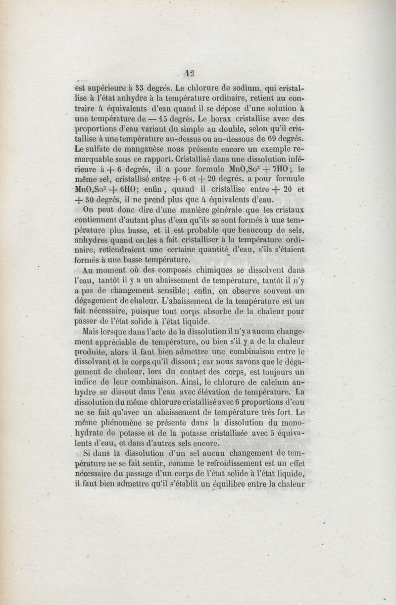 Du rôle de l'eau dans les phénomènes chimiques
