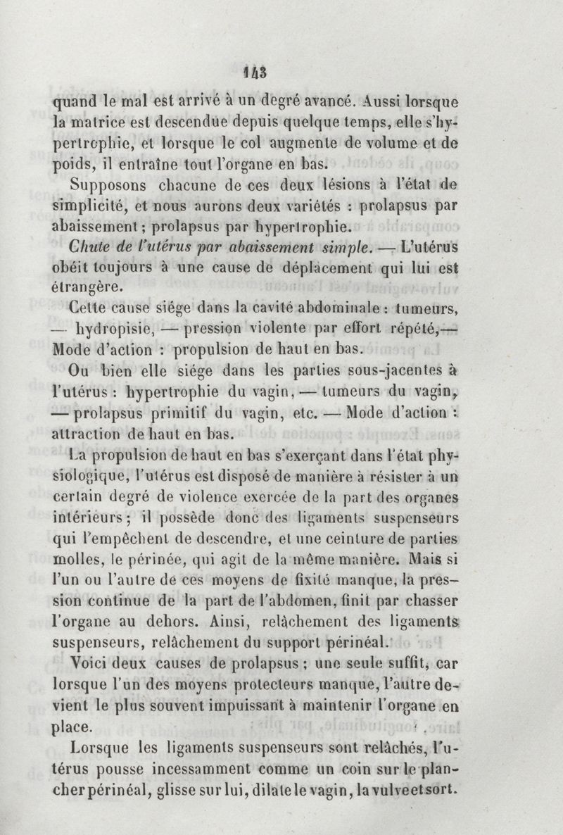 De la chute de l'utérus