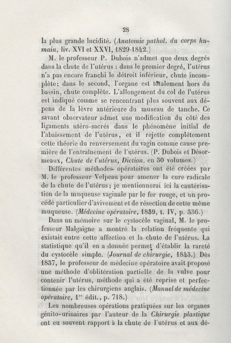 De la chute de l'utérus