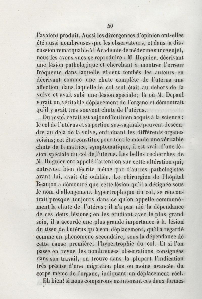 De la chute de l'utérus