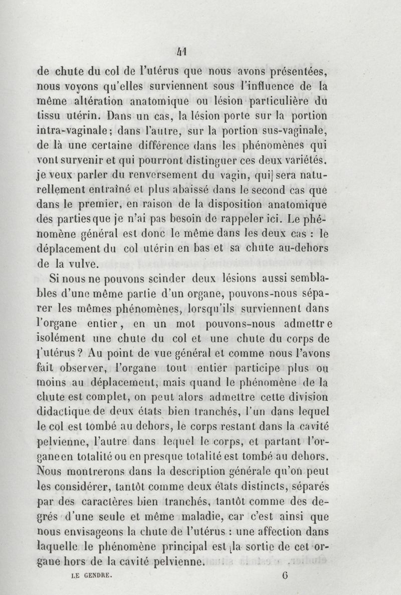 De la chute de l'utérus