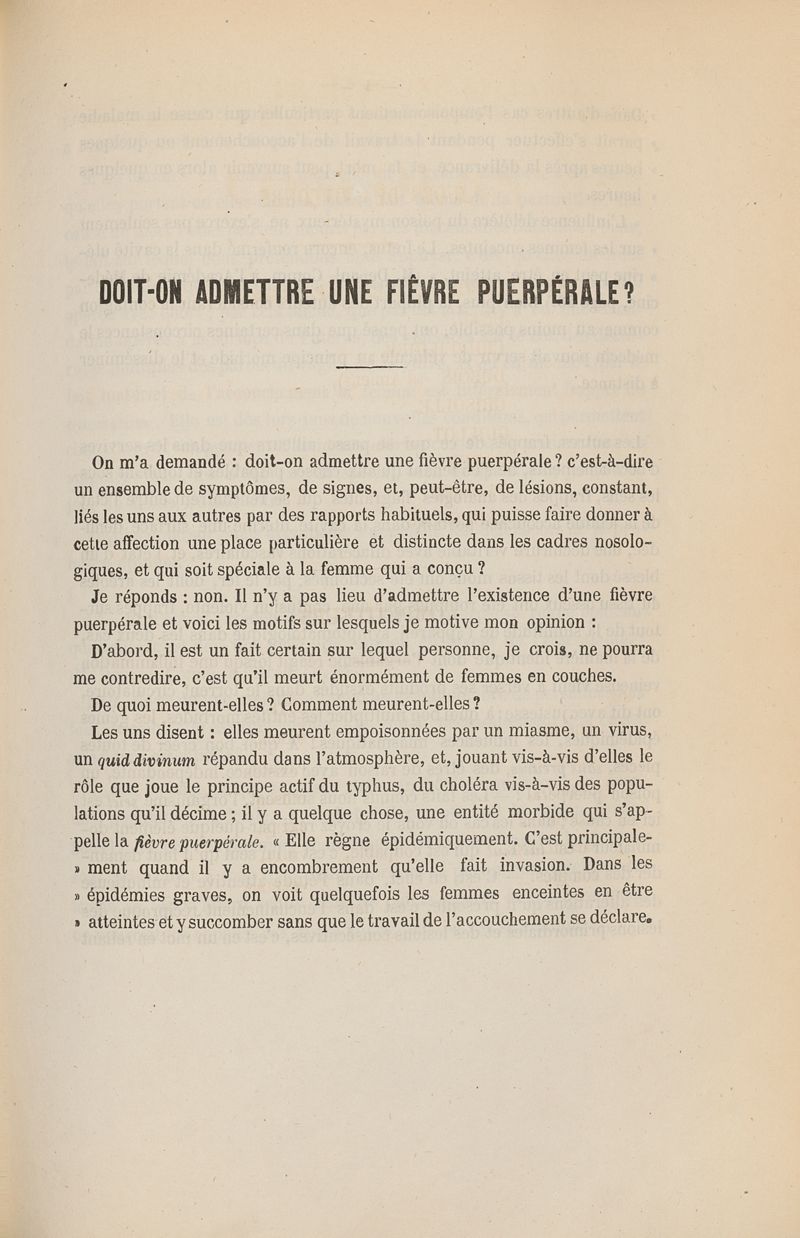 Doit-on admettre une fièvre puerpérale ?