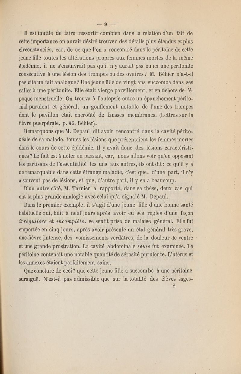 Doit-on admettre une fièvre puerpérale ?
