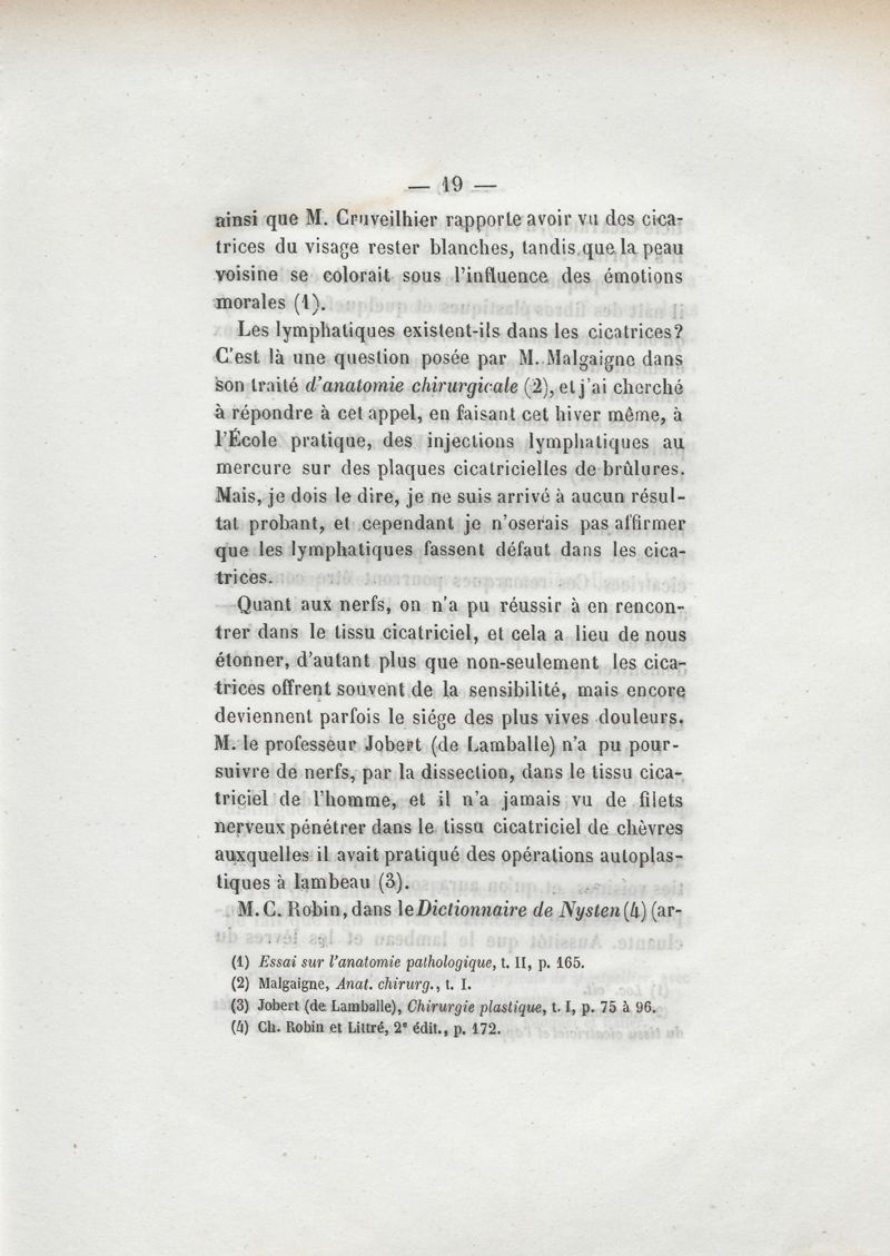 Des cicatrices vicieuses et des moyens d'y remédier