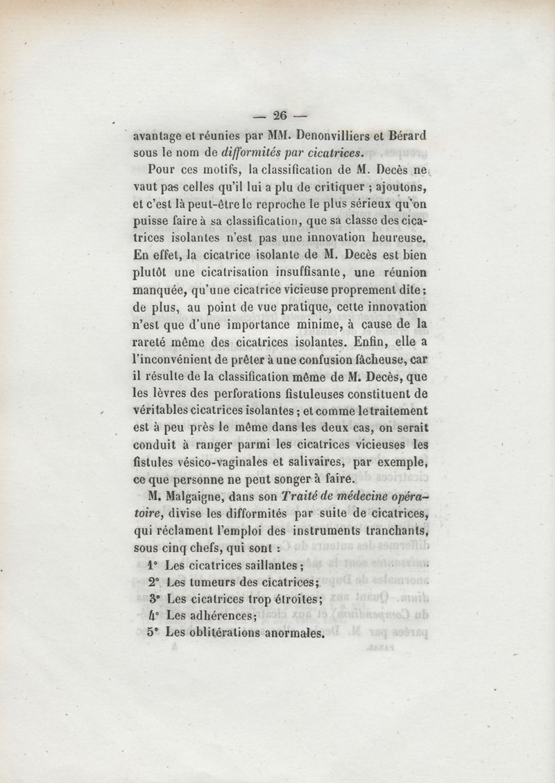 Des cicatrices vicieuses et des moyens d'y remédier