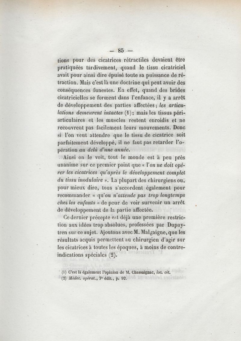 Des cicatrices vicieuses et des moyens d'y remédier