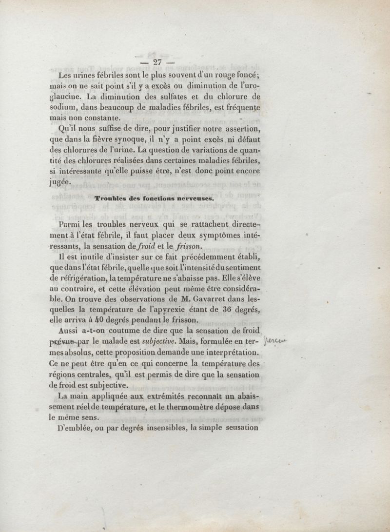 De l'état fébrile