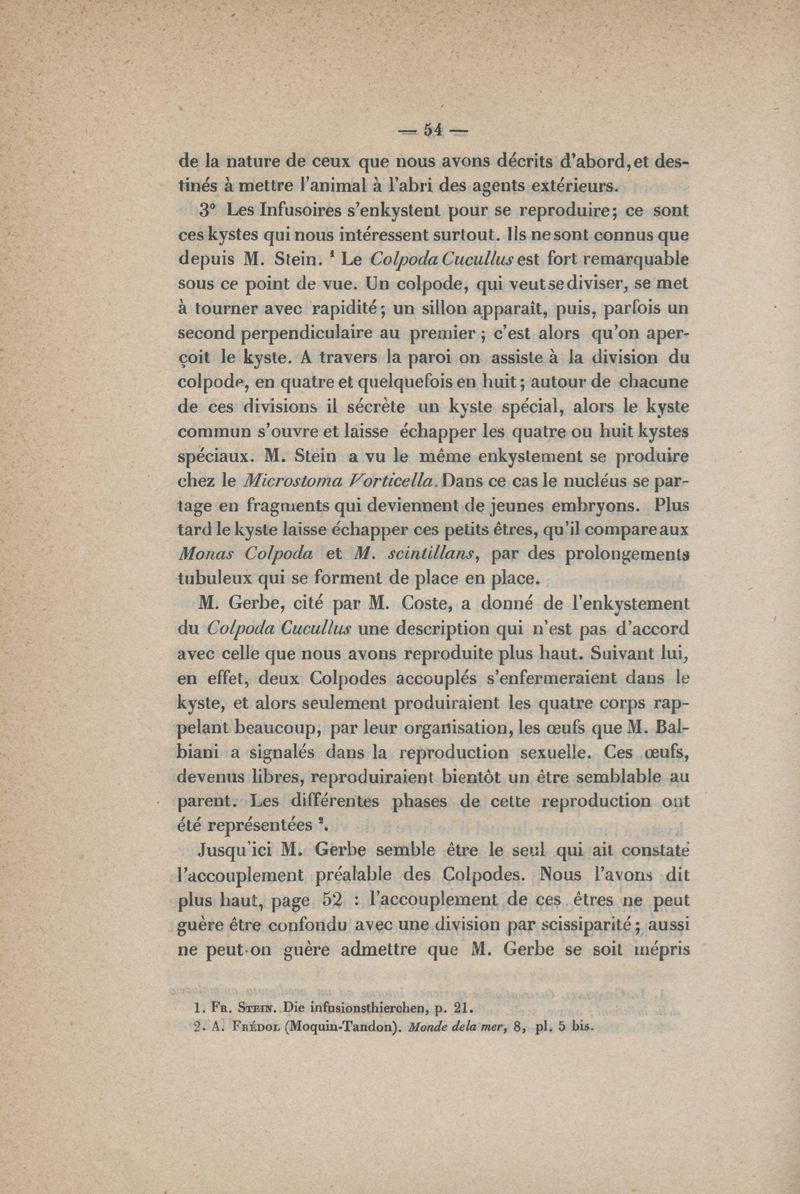 De la reproduction des animaux infusoires