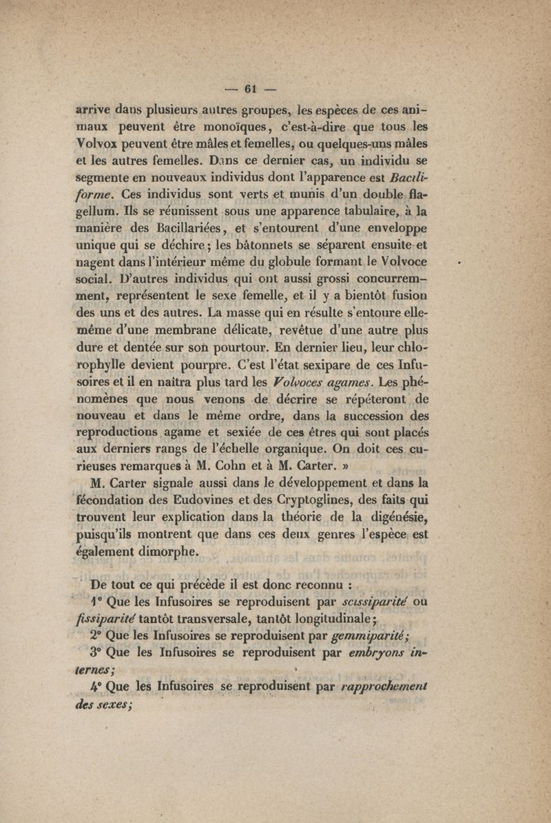 De la reproduction des animaux infusoires