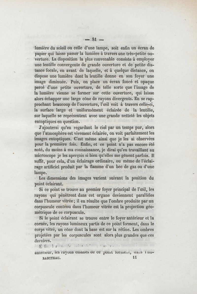 Des phénomènes physiques de la vision