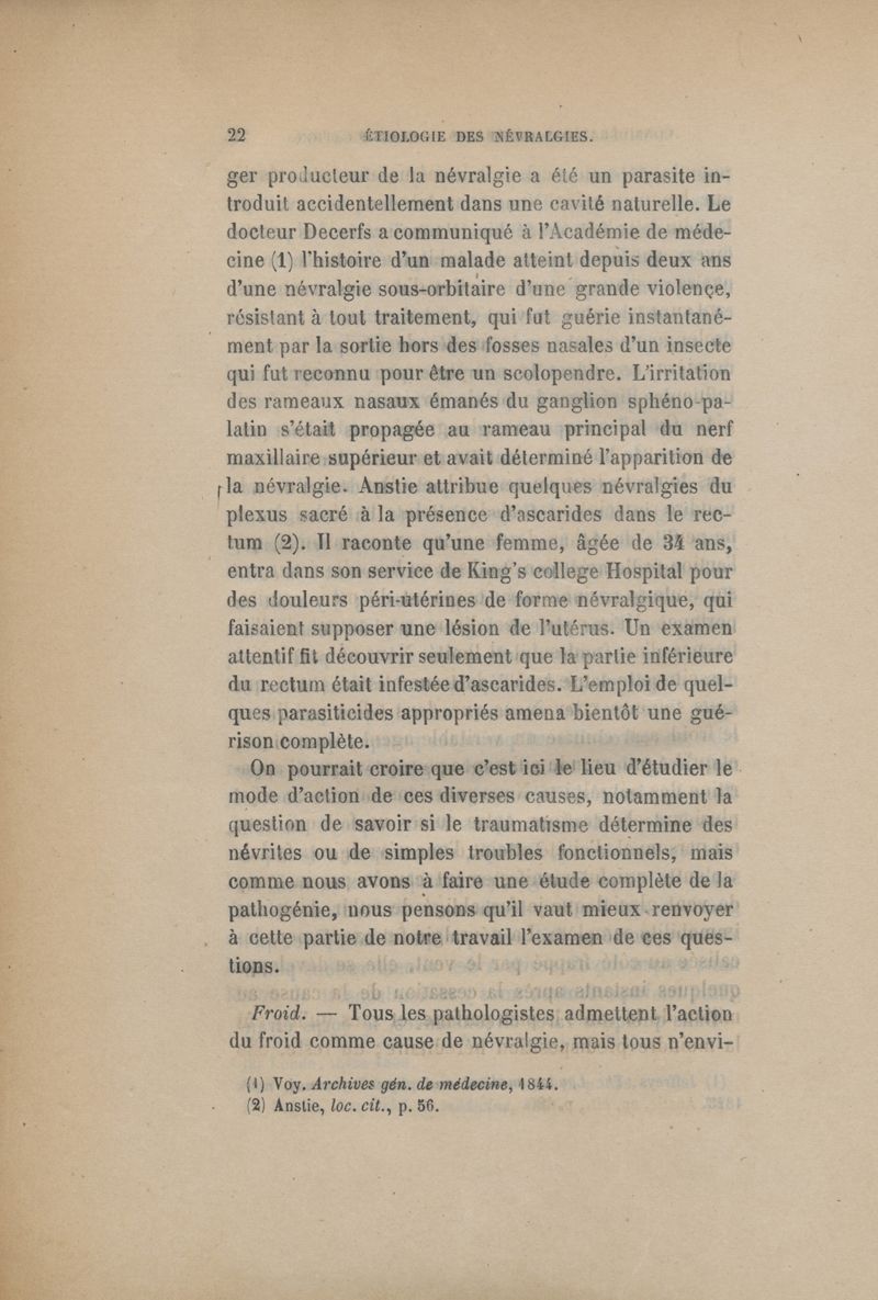 Causes et pathogénie des névralgies