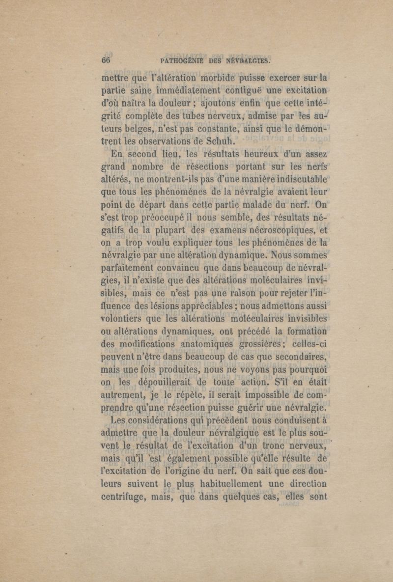 Causes et pathogénie des névralgies