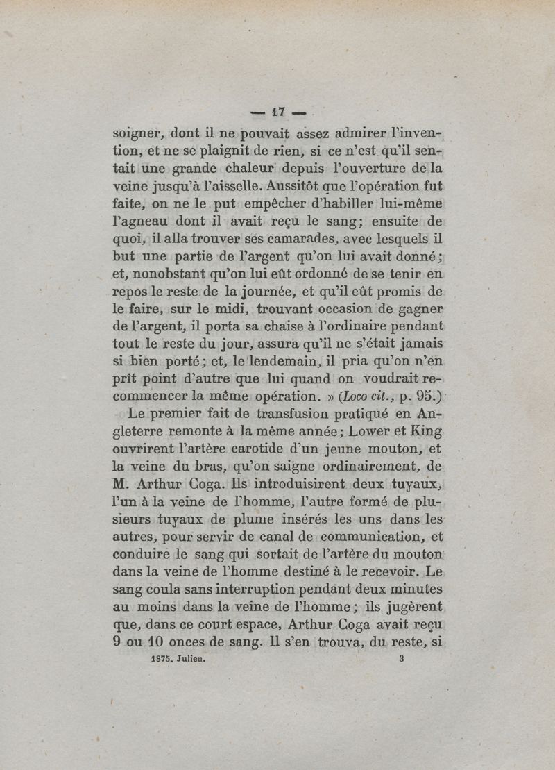 De la transfusion du sang