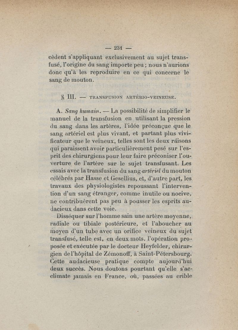 De la transfusion du sang