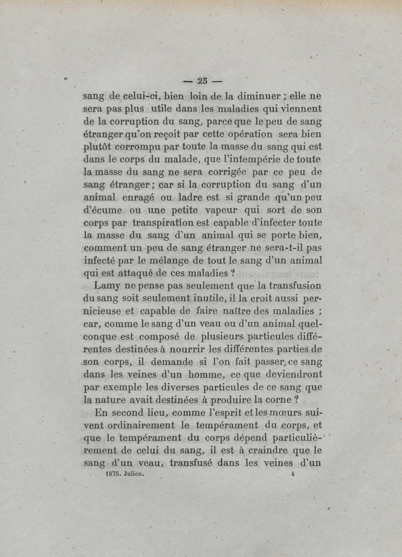 De la transfusion du sang