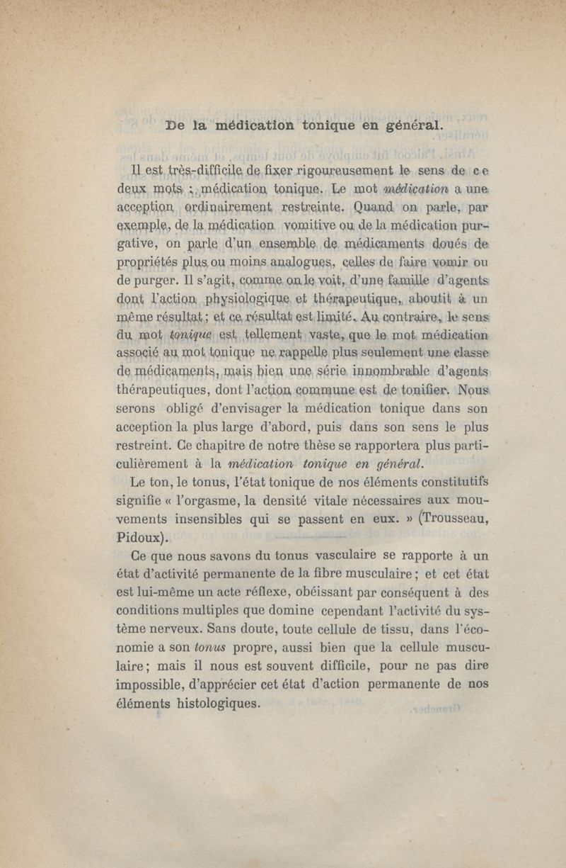 De la médication tonique