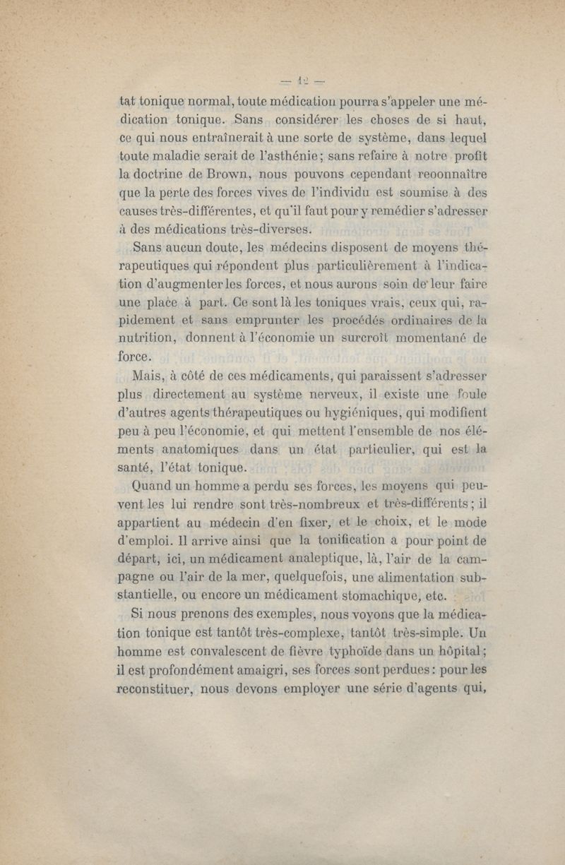 De la médication tonique
