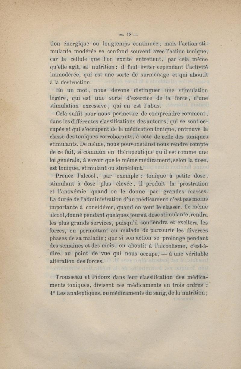 De la médication tonique