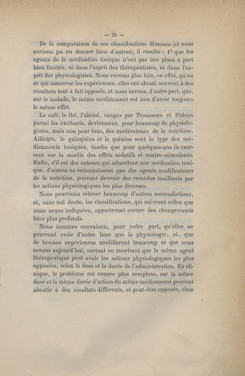 De la médication tonique