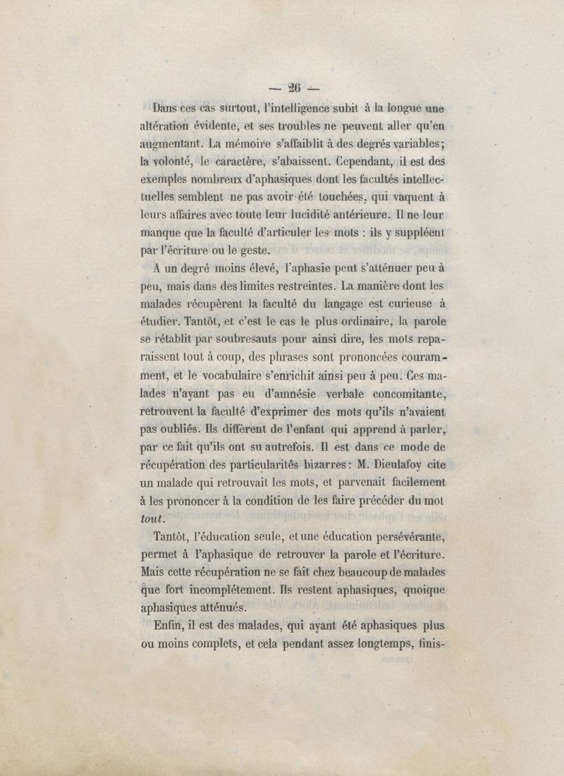 De l'aphasie