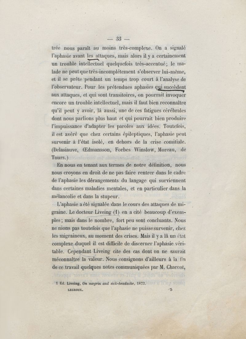 De l'aphasie