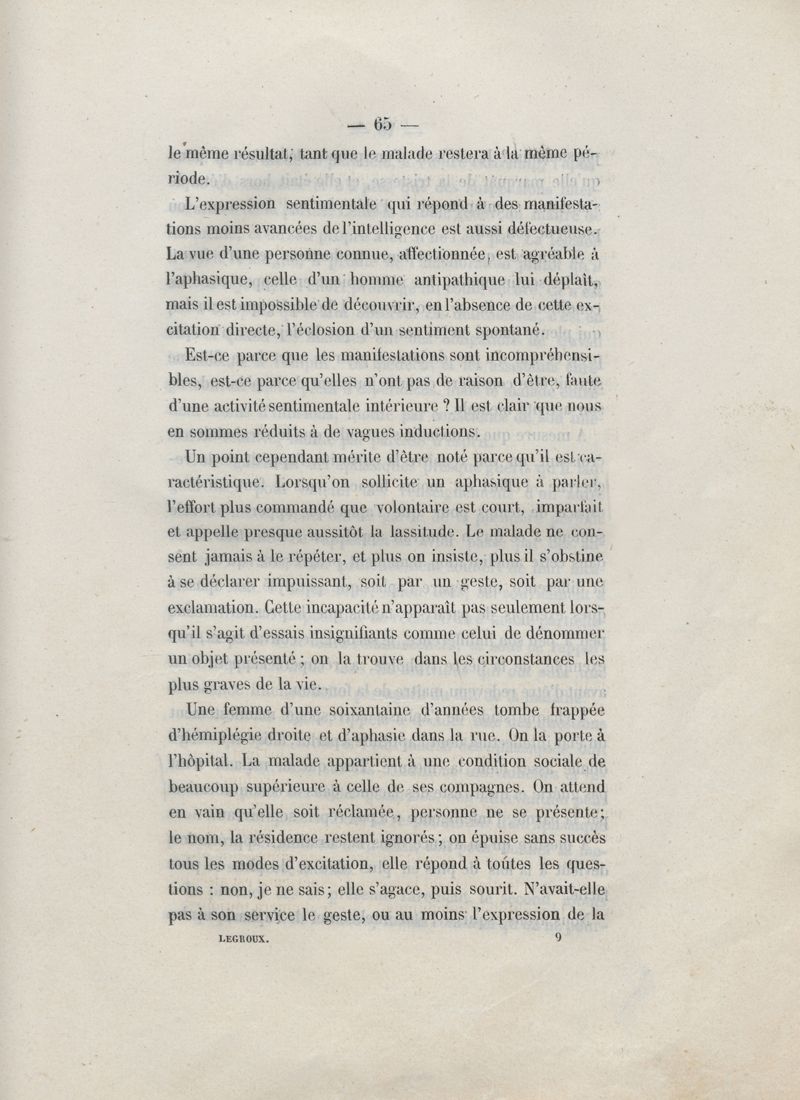 De l'aphasie