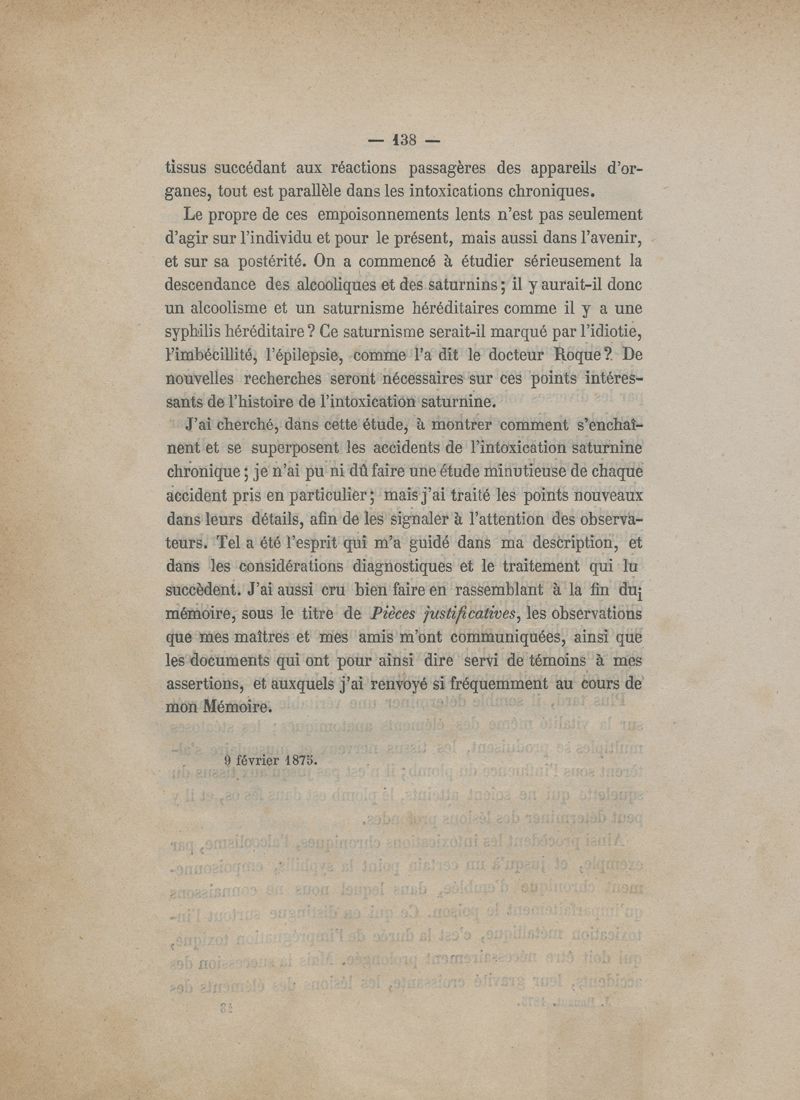 De l'intoxication saturnine chronique