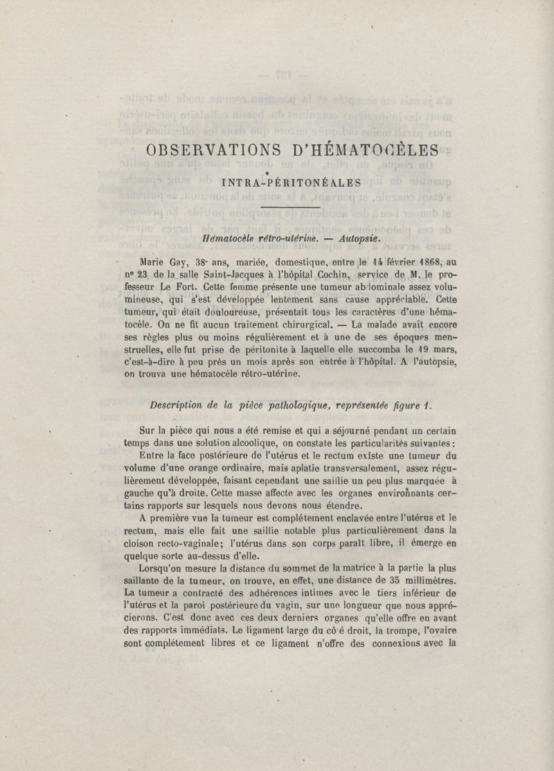 De l'hématocèle péri-utérine