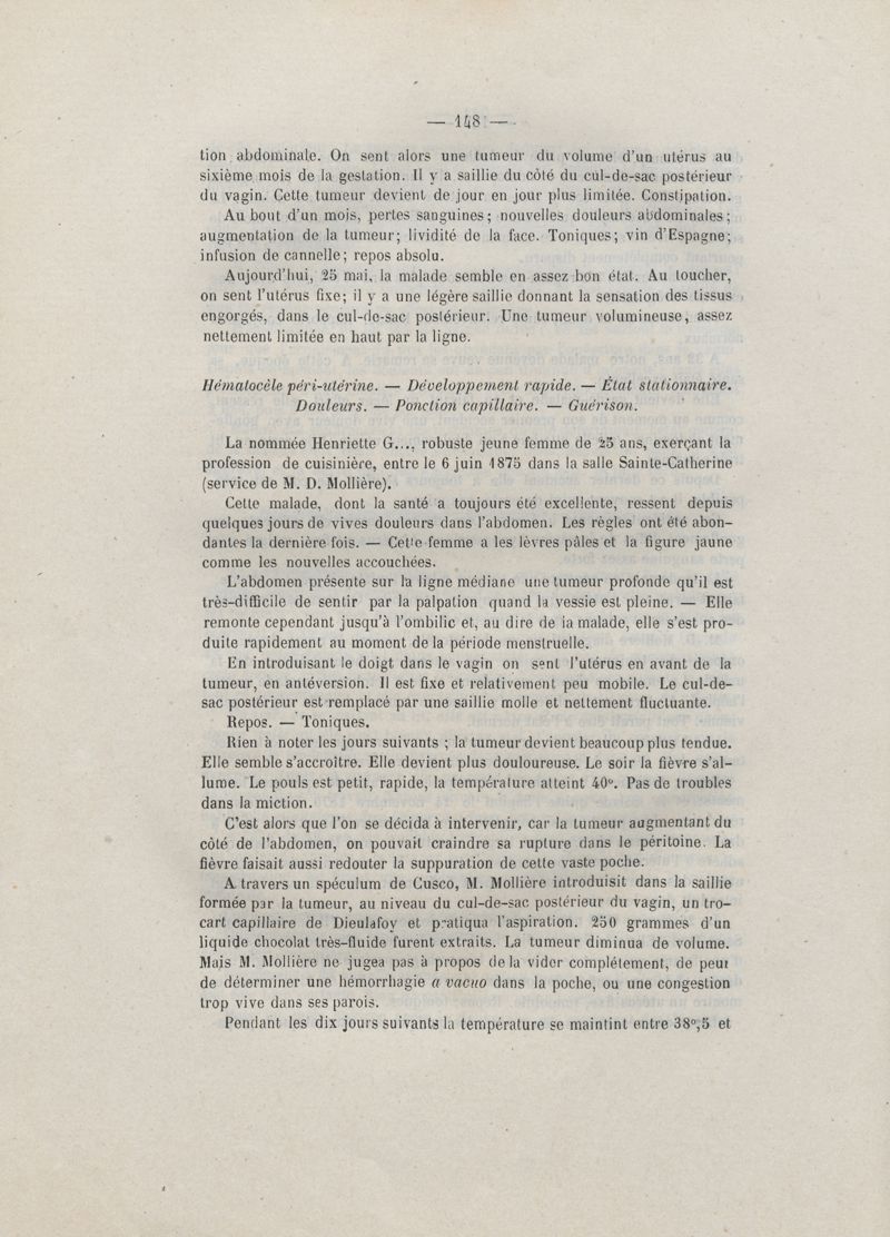 De l'hématocèle péri-utérine