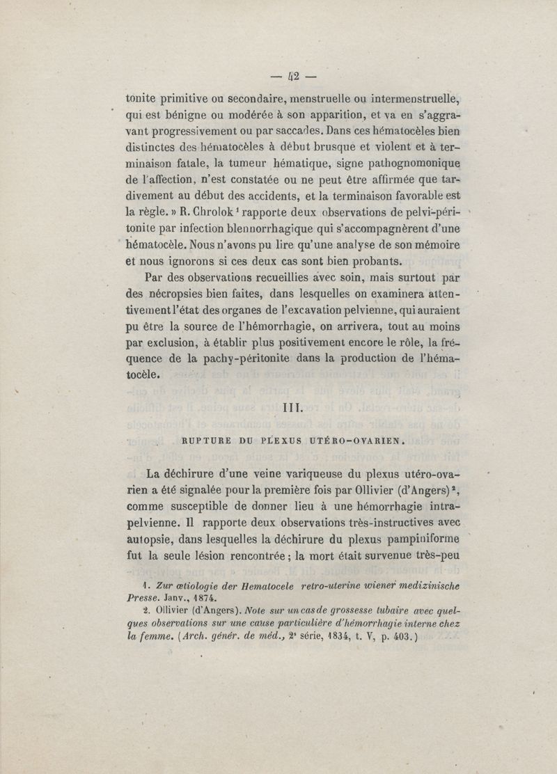 De l'hématocèle péri-utérine