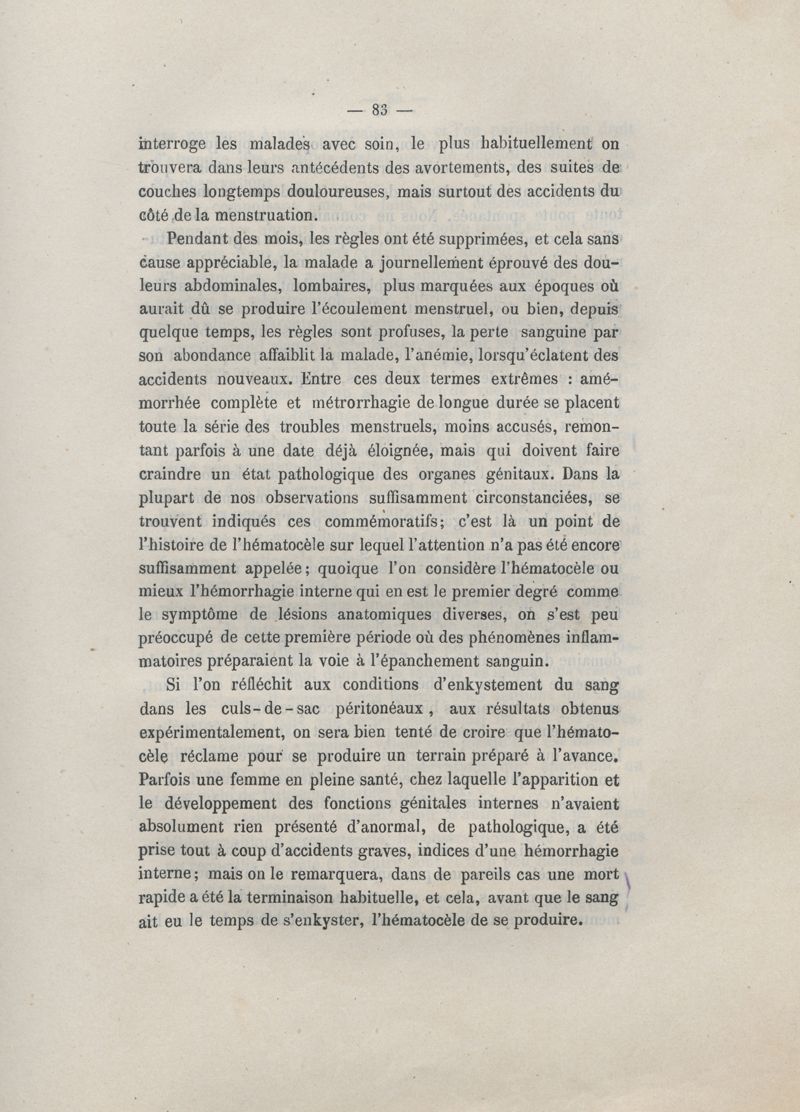 De l'hématocèle péri-utérine