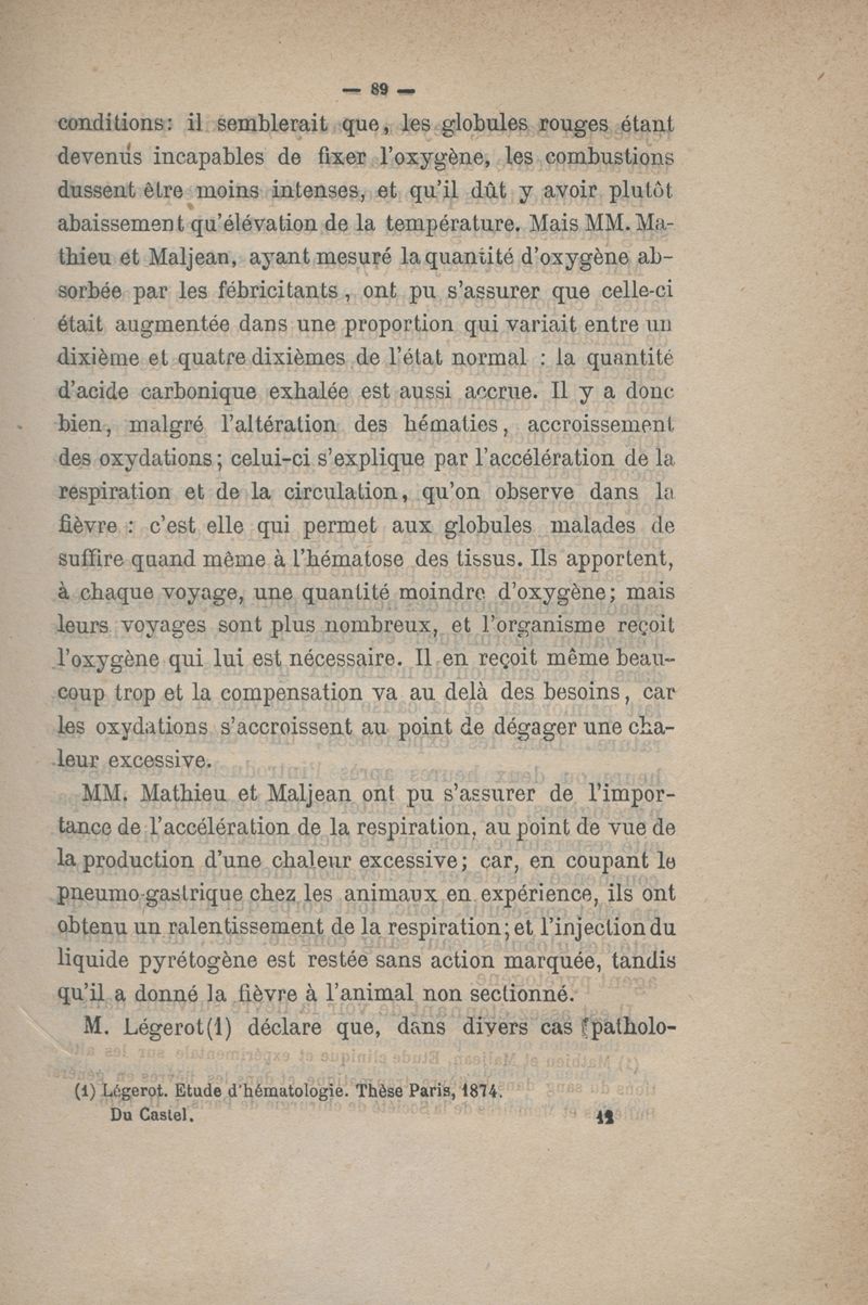 De la physiologie pathologique de la fièvre
