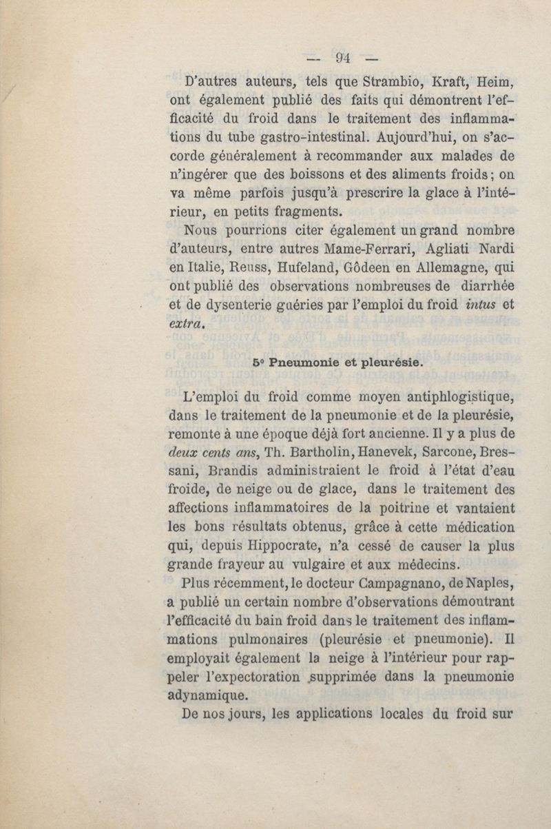Du froid en thérapeutique