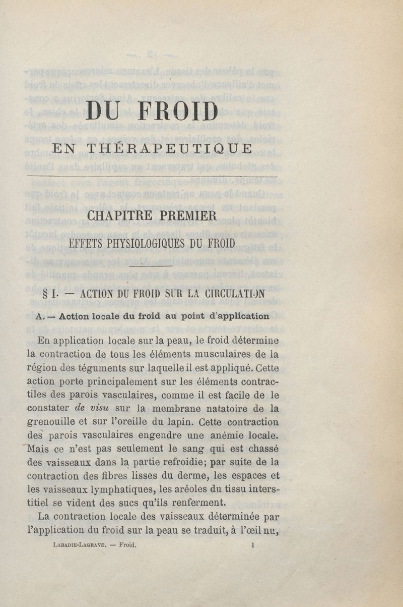 Du froid en thérapeutique