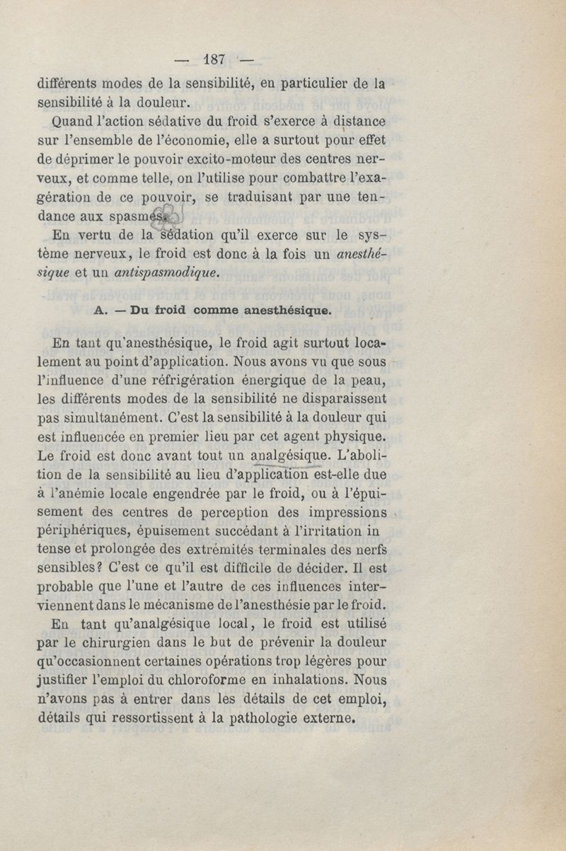 Du froid en thérapeutique