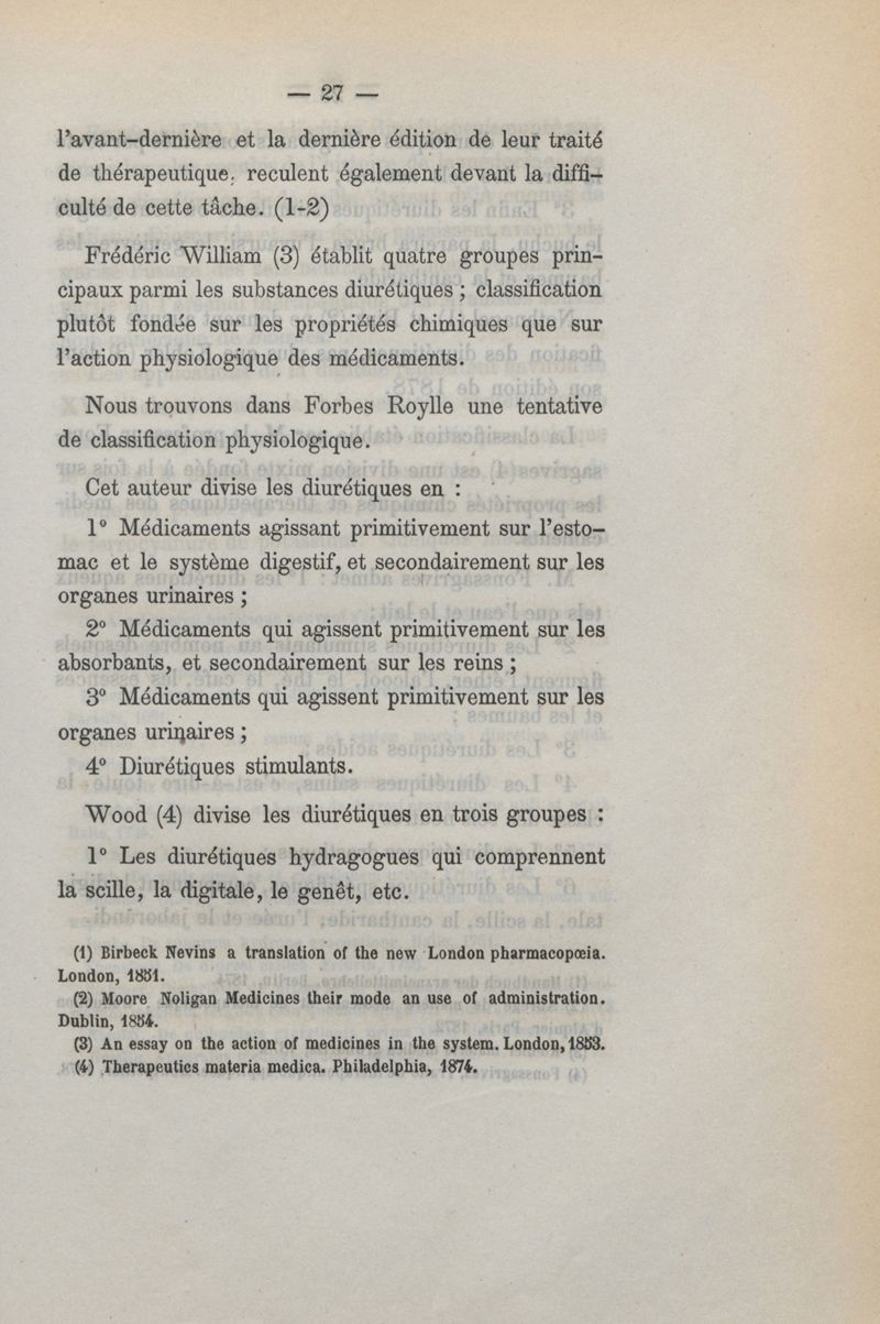 De la médication diurétique