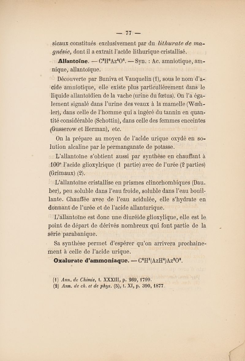 Principes azotés cristallisables de l'organisme animal
