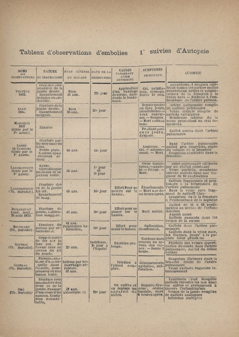 Des embolies veineuses d'origine traumatique