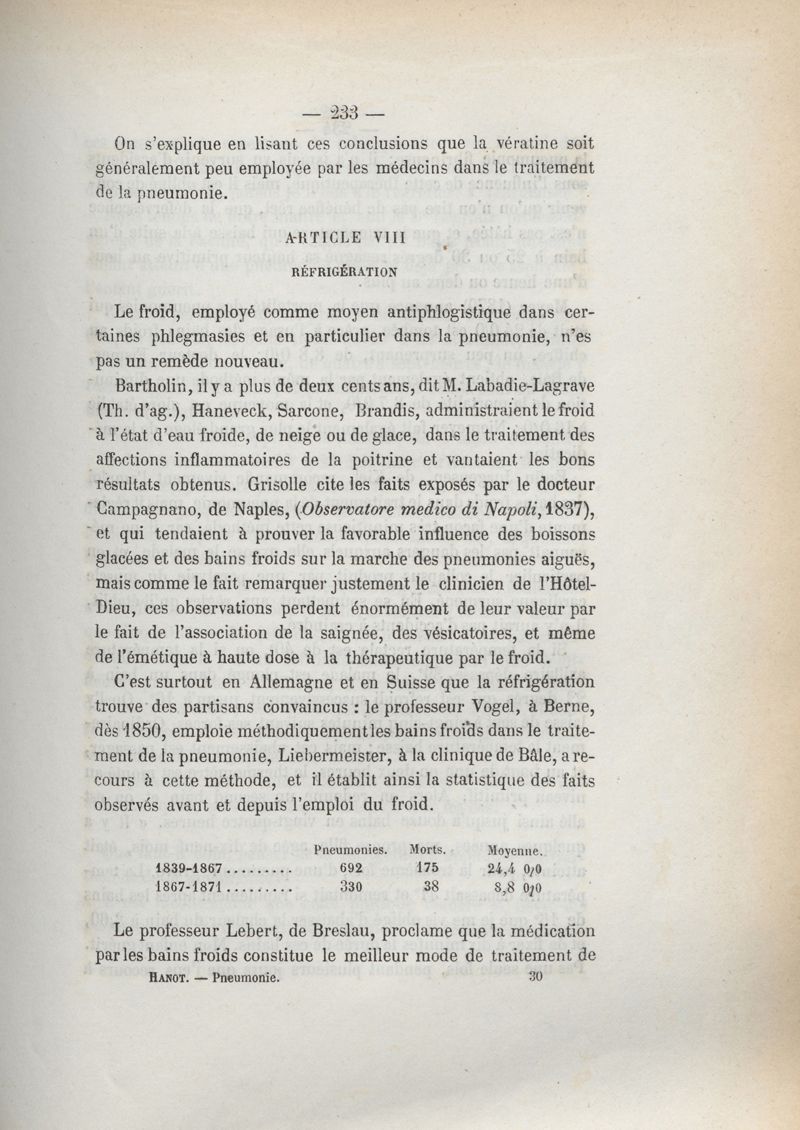 Du traitement de la pneumonie aiguë
