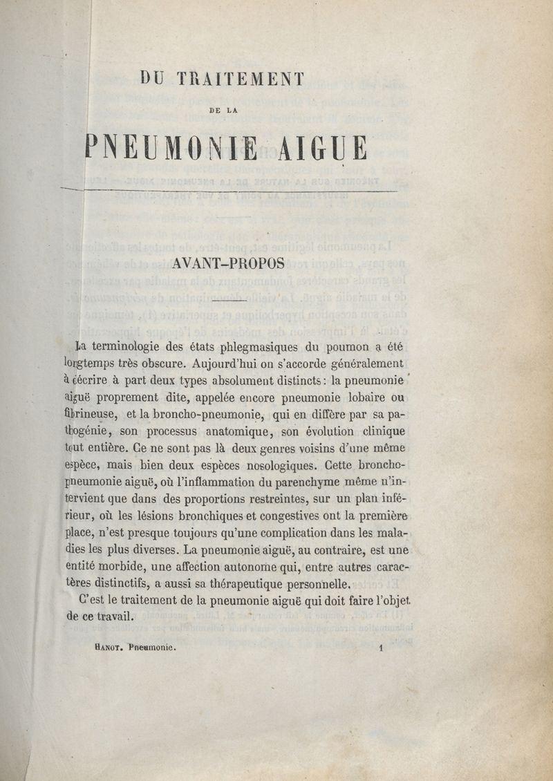 Du traitement de la pneumonie aiguë