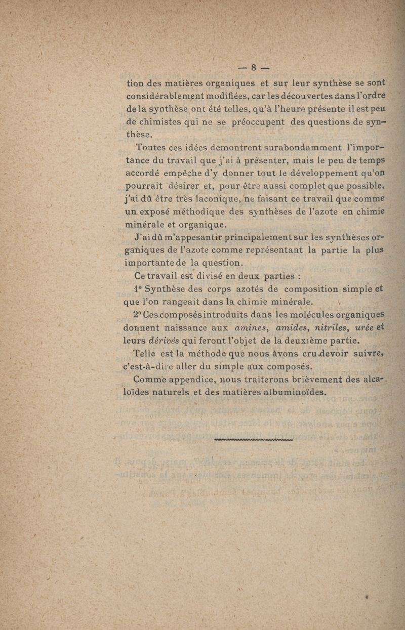Synthèse des corps azotés