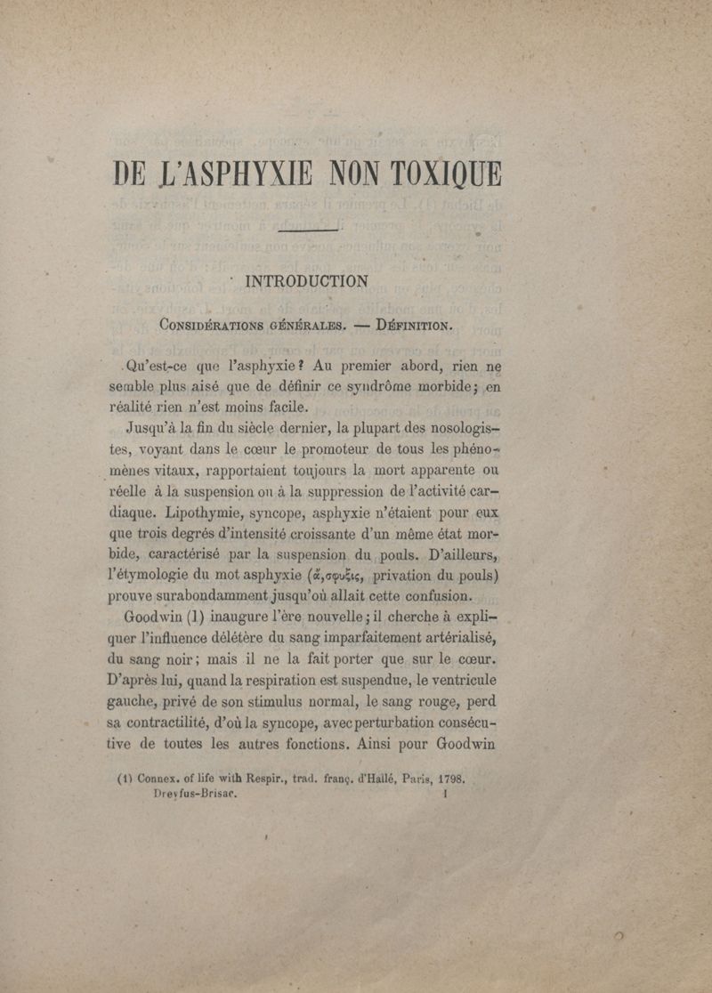 De l'asphyxie non toxique