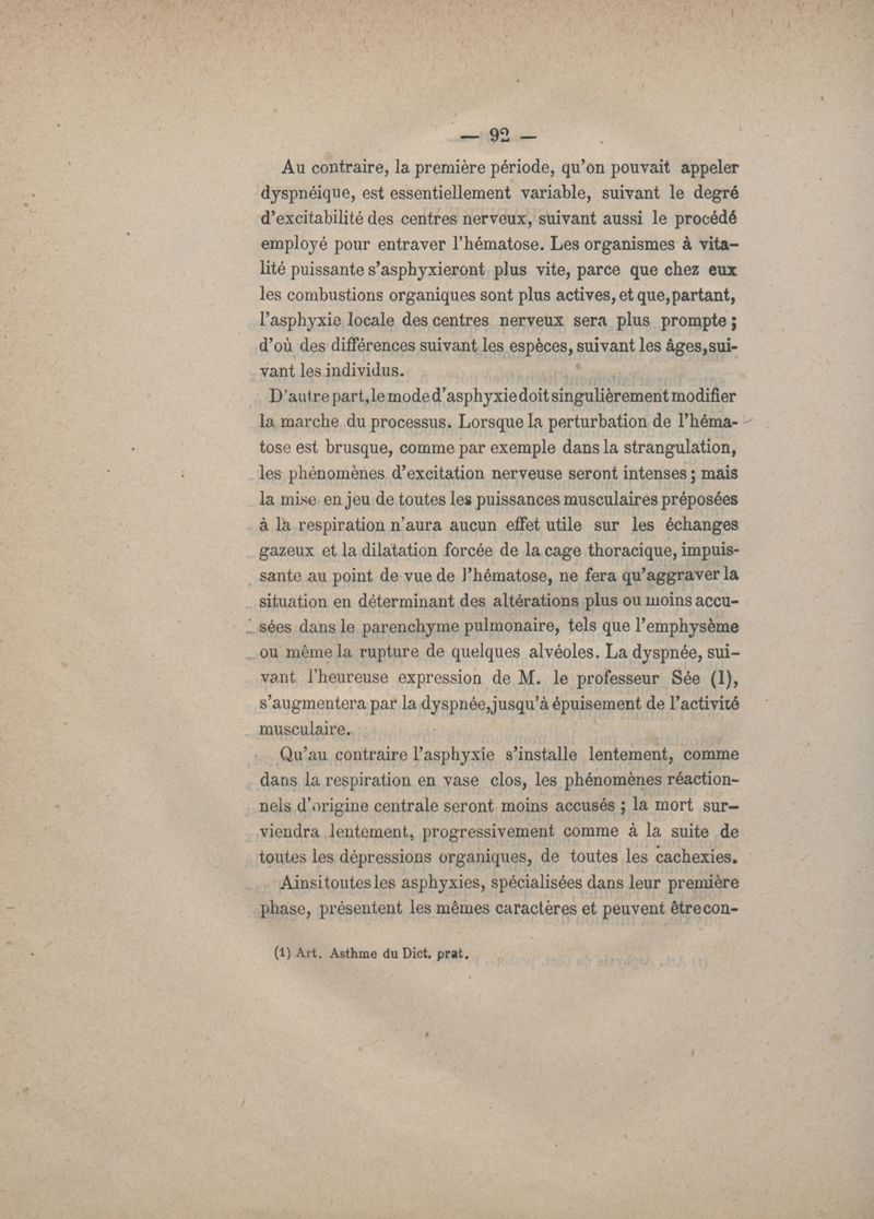 De l'asphyxie non toxique