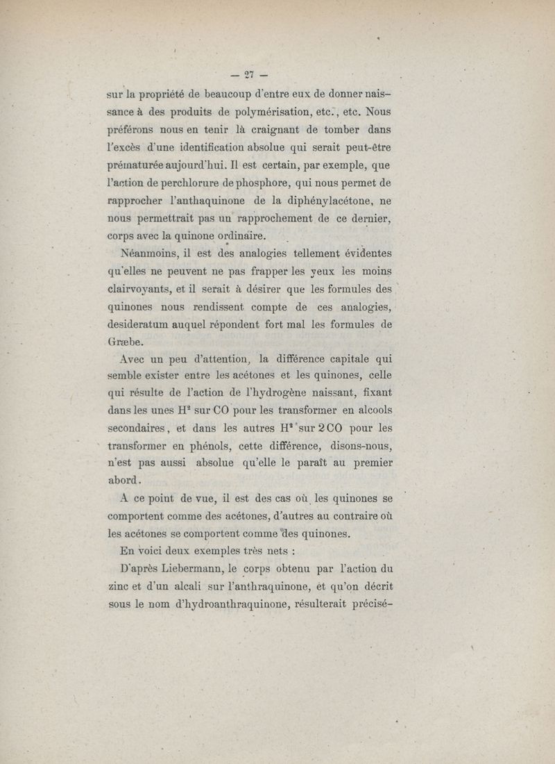 Histoire des quinones