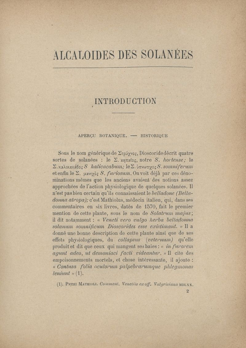 Les alcaloïdes des solanées