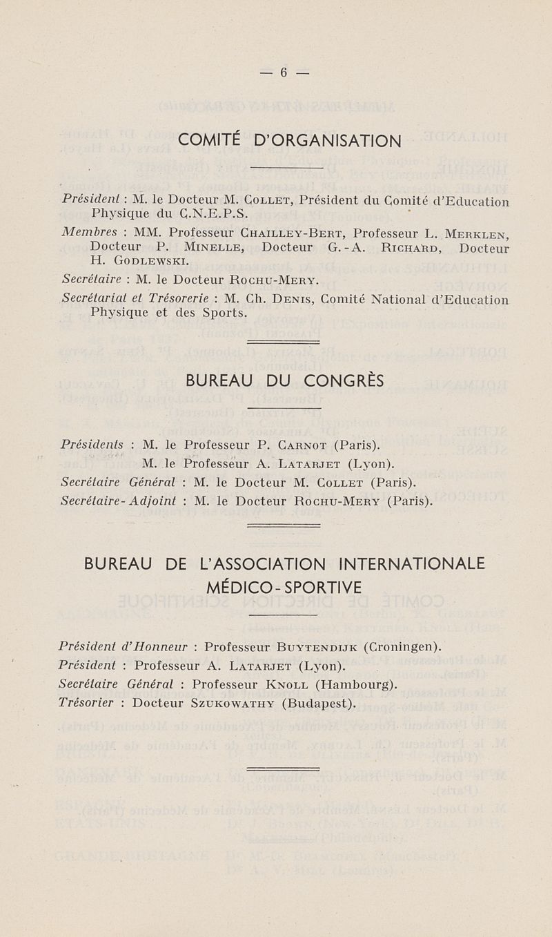 Congrès international de médecine appliquée à l'éducation physique et aux sports.